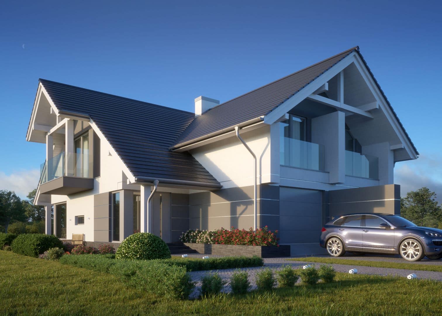 Dla Państwa bezpieczeństwa, każdy bliźniak posiada własne ogrodzenie, garaż w bryle budynku, wybrukowany podjazd z jednym miejscem postojowym i tarasem. Zaletą inwestycji jest własny ogródek, w każdym bliźniaku. W części wewnętrznej budynek posiada wylewki, tynki gipsowe wraz ze wszystkimi instalacjami wewnętrznymi. Przygotowany jest również pod montaż fotowoltaiki. Wszystkie instalacje gotowe do przyłączenia ze sprzętem białego montażu. Stolarka okienna PCV w systemie przeszklenia szybami dwukomorowymi (trzyszynowe), nowoczesne drzwi wejściowe antywłamaniowe z dwoma zamkami.