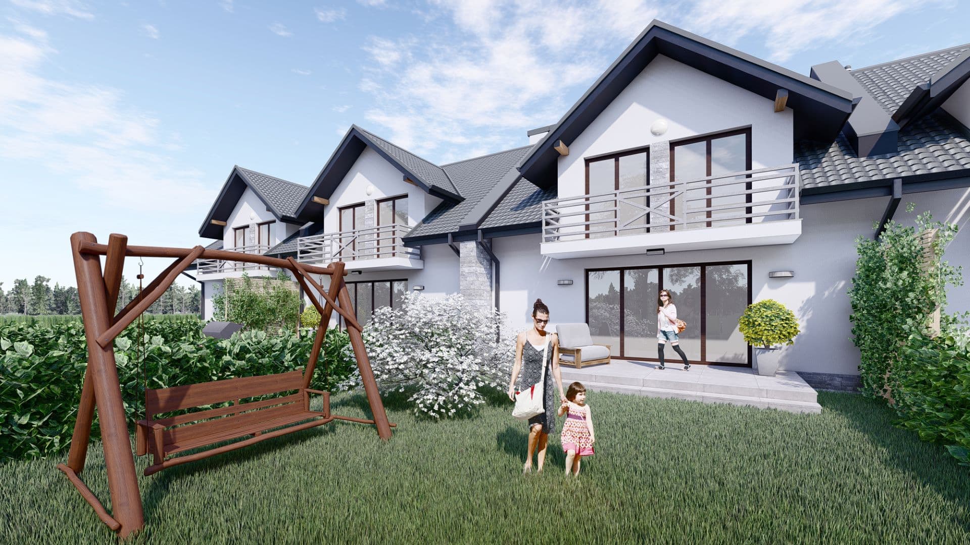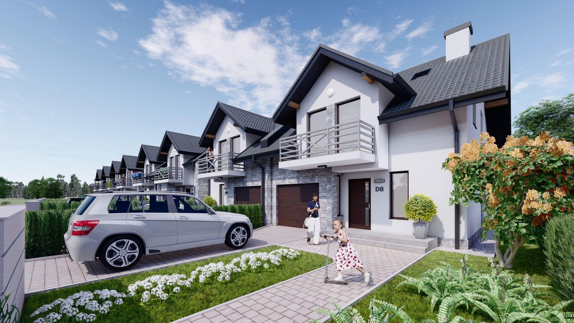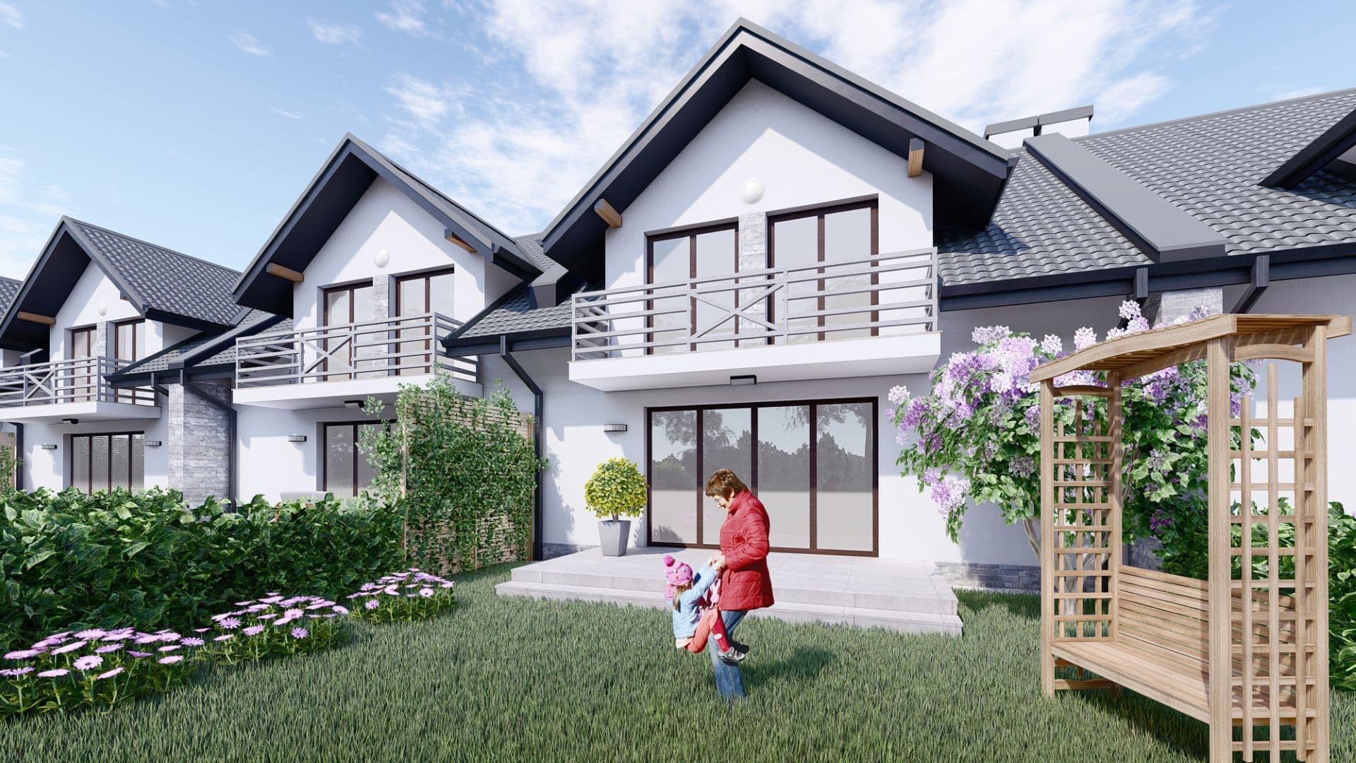 Nowoczesny, ekologiczny i energooszczędny budynek w zabudowie segmentowej, oddawany jest w stanie Deweloperskim PLUS, tzn. dom w całości wykończony na zewnątrz, ocieplony styropianem, wybudowany w technologii tradycyjnej z materiałów najwyższej jakości – w obecnie najnowszych trendach kolorystycznych na rynku. Dla Państwa bezpieczeństwa, segment posiada własne ogrodzenie, garaż w bryle budynku, wybrukowany podjazd z trzema miejscami postojowymi i tarasem. Zaletą inwestycji jest własny ogródek, w każdym segmencie.