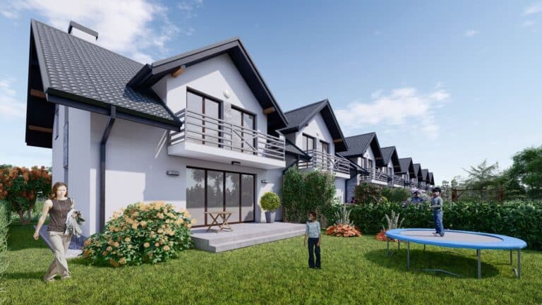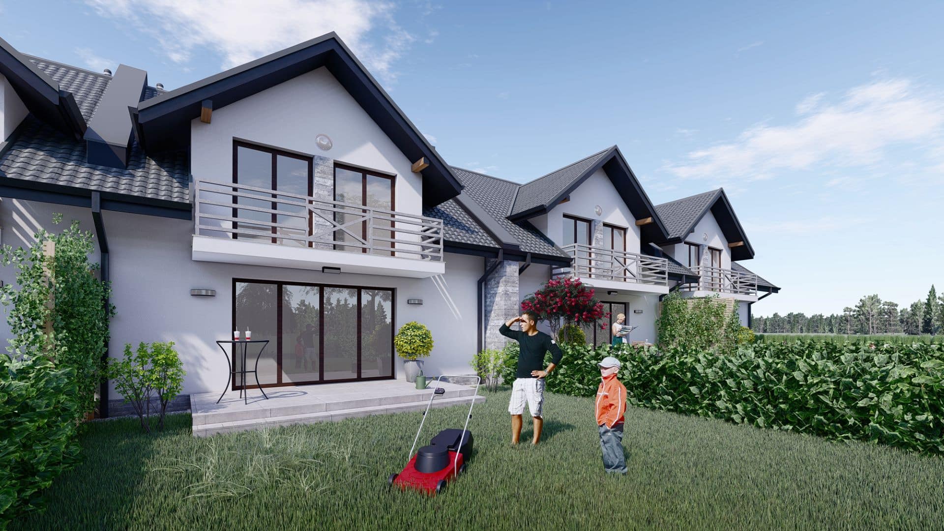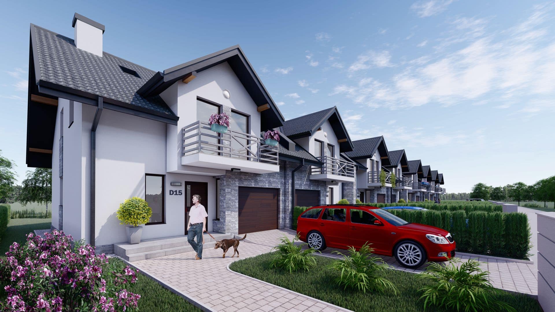 Nowoczesny, ekologiczny i energooszczędny budynek w zabudowie segmentowej, oddawany jest w stanie Deweloperskim PLUS, tzn. dom w całości wykończony na zewnątrz, ocieplony styropianem, wybudowany w technologii tradycyjnej z materiałów najwyższej jakości – w obecnie najnowszych trendach kolorystycznych na rynku. Dla Państwa bezpieczeństwa, segment posiada własne ogrodzenie, garaż w bryle budynku, wybrukowany podjazd z trzema miejscami postojowymi i tarasem. Zaletą inwestycji jest własny ogródek, w każdym segmencie.