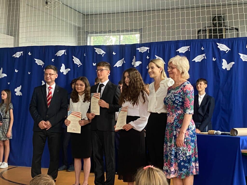 Dnia 22.06.2023 odbyło się zakończenie Roku Szkolnego. Oczywiście nie mogliśmy przegapić tak ważnego wydarzenia! Odbyła się uroczystość wręczenia stypendiów dla najlepszych uczniów w kategorii nauk i sportu z Zespołu Szkół w Librantowej. Co roku Polsko-Amerykańska Fundacja Zdrowia i Sportu „Victoria” funduje stypendia dla trzech najlepszych uczniów.